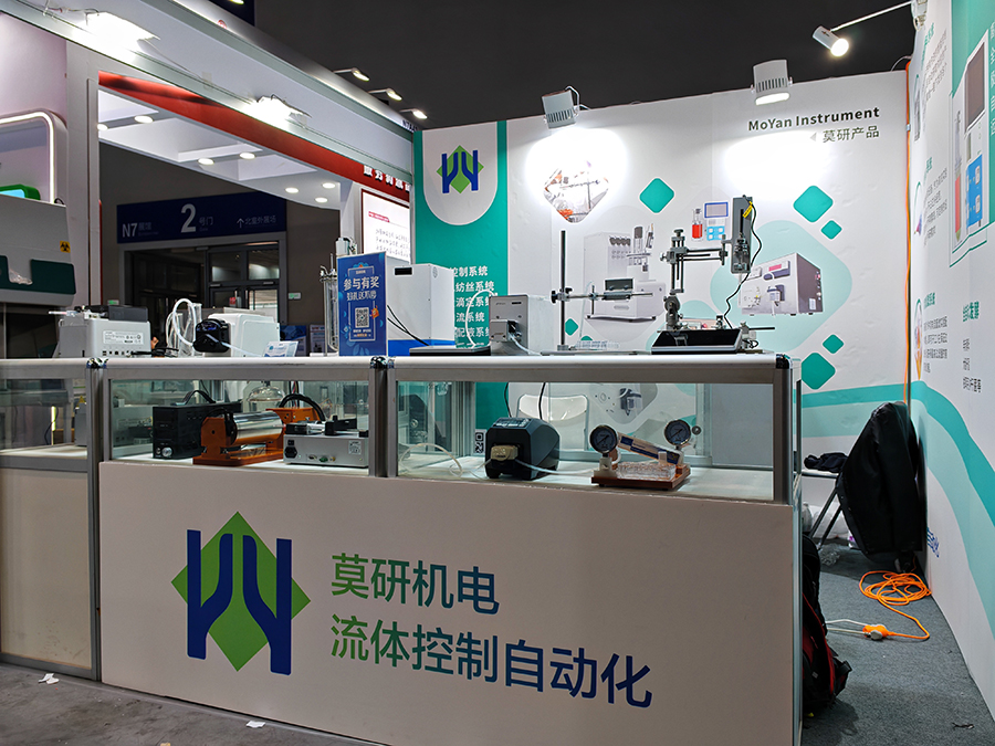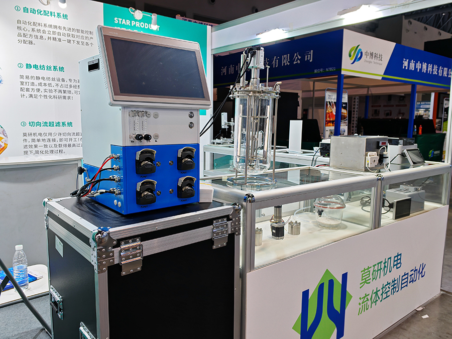 展會現場,莫研機電的展位號為 N7A22,精心陳列了滴定儀、生物發生器、蠕動泵、注射泵等多款先進儀器,以及靜電紡絲系統、切向流系統、稱重分裝系統等系統應用。其中,自動化配料系統與生物反應器系統堪稱明星展品。自動化配料系統以其先進智能控制核心驚艷全場,能迅速獲取產品配方信息,并一鍵下發至各分配器。FKE - A5 全自動生物反應器作為生物反應器系統代表,高精度 DO 控制與全自動過程控制能力,為高校實驗及科研工作筑牢堅實技術支撐,其簡潔界面與自由擴展性能,深度契合科研個性化需求,有力推動實驗進程。